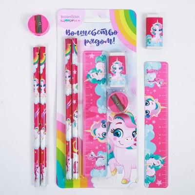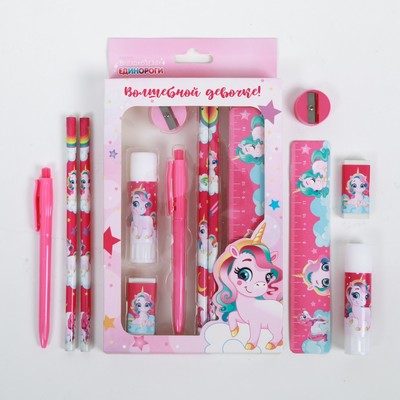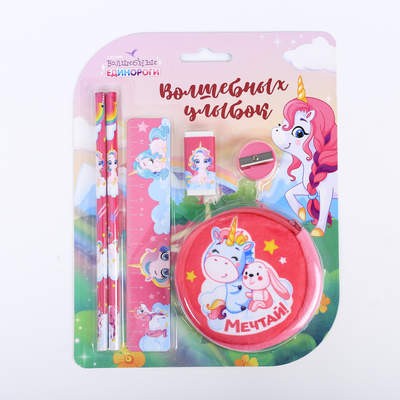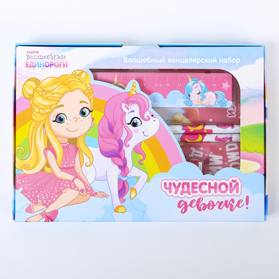 Кто не любит единорогов? Единорогов любят все! Эти милые существа будут улыбаться девочке со всех карандашей и ластиков — пусть ребёнок радуется каждый день.
