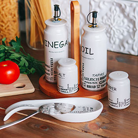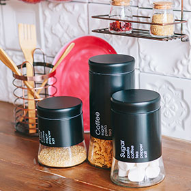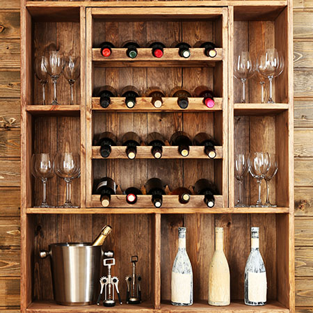 Учитывайте, что на открытых полках быстрее скапливается пыль. Поэтому хранить там лучше крупные предметы, которые просто протирать: банки с заготовками, крупами, бутылки с алкоголем. Для него, кстати, можно выбрать специальную подставку.