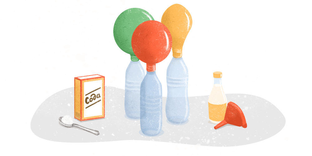 Понадобится: воздушный шарик, воронка, бутылка, 2–3 чайные ложки соды, 100 мл уксуса.