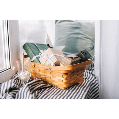 Чем больше подарков — тем лучше. Для тех, кто решил порадовать близких целой горой презентов, подойдут плетёные корзинки. Особенно эффектно они смотрятся, если упаковать каждый подарок отдельно и сложить их беспорядочно, создав творческий хаос.