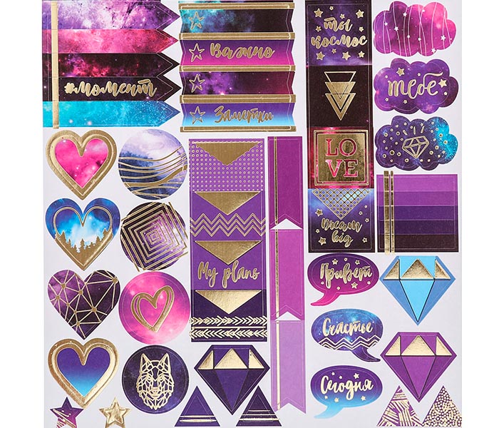 А это для тех, кто любит скрапбукинг: такие наклейки украсят любую основу.