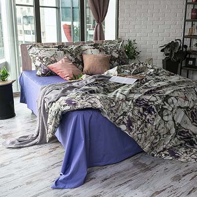 Популярность природных материалов не падает уже на протяжении нескольких сезонов. В этот раз дизайнеры отошли от экологичного дерева и остановились на благородном камне. Он нашёл место в массивной мебели и даже в тканях — постельном белье, шторах и декоративных подушках.