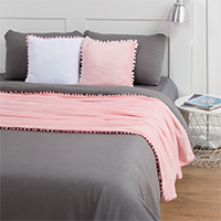 Холодная цветовая гамма благородна. И поэтому она как нельзя лучше сочетается с роскошным узором драгоценных камней — на постельном белье и подушках. Плед можно выбрать в тёплой гамме: так вы правильно расставите цветовые акценты и не сделаете помещение слишком мрачным.