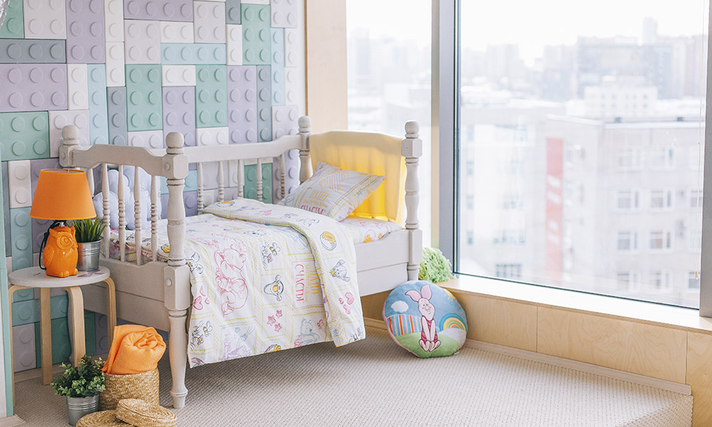 Родителям важно, чтобы дети чувствовали себя комфортно и безопасно в комнате. Для создания уюта и тепла лучше всего подойдут шторы песочных оттенков. Кровать можно застелить бельём с любимыми мультперсонажами — так малышу будет приятнее засыпать ночью 😊