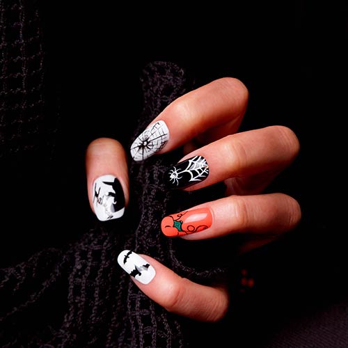 По-прежнему популярны цветная втирка, мазки и брызги, френч. Но если хочется чего-то остромодного, сделайте паутинку или крошечный тематический рисунок. Вот что для этого пригодится.
