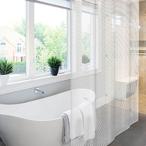 Выберите штору в цвет стен, а яркими акцентами сделайте полотенце и ковёр. Так вы сможете кардинально менять внешний вид помещения хоть каждый день.