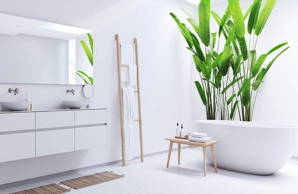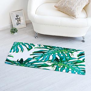 Для создания маленького домашнего оазиса вам понадобится совсем немного: яркие экзотические растения. Необязательно настоящие — достаточно принта на полотенце, коврике и небольшой корзинки под мелочи.