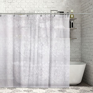 А вот шторку для ванной лучше выбрать однотонную, на пару оттенков светлее стен. Так помещение будет казаться намного просторнее.
