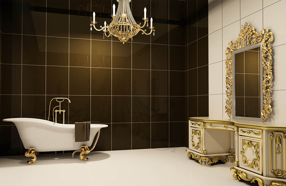 Мы искренне завидуем людям, чья ванная выполнена в чёрно-белых цветах. Ведь именно такое сочетание считается базой ар-деко. В этом стиле есть всё: роскошь и строгость, глянцевые переливы и чёткие линии, минималистичный монохром и максимально смелые сочетания принтов.