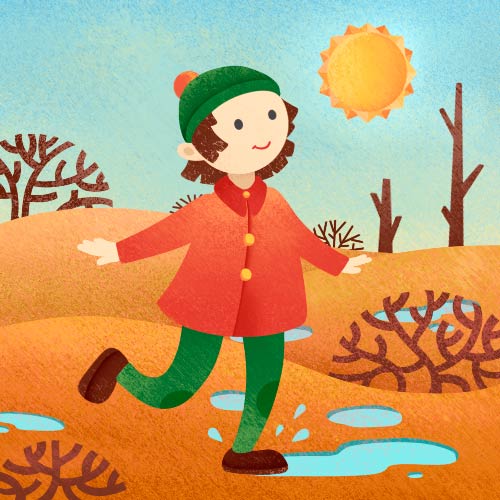 Если малыш обладает суперспособностью за секунду перемещаться от вашей руки в лужу, одевайте его как себя: кофта или водолазка плюс штанишки из плотной ткани и непромокаемая верхняя одежда. Плотность утеплителя должна быть 50–120 г/м². Обувь — водонепроницаемая.
