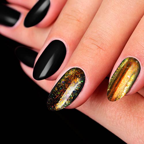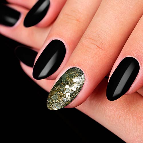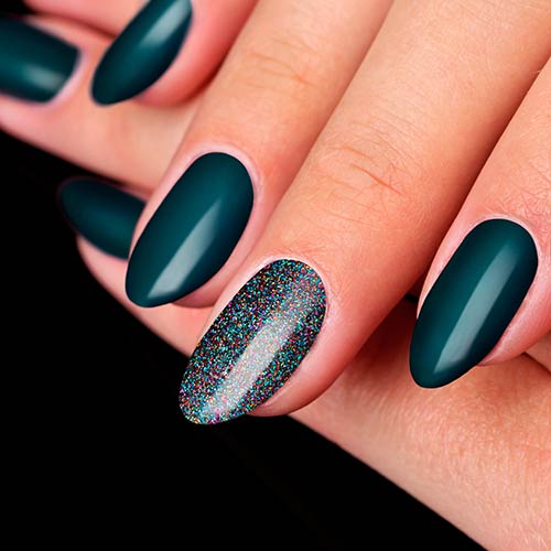 Блестящий декор теперь уже не считается атрибутом вечеринок в стиле диско. Если покрыть глиттером один ноготь или сделать с ним френч, то маникюр подойдёт даже к строгому офисному дресс-коду.