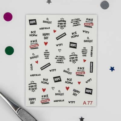 Принты с надписями перекочевали с одежды и рюкзаков на ногти. По-прежнему актуальны и слайдеры в виде цветов и узоров.