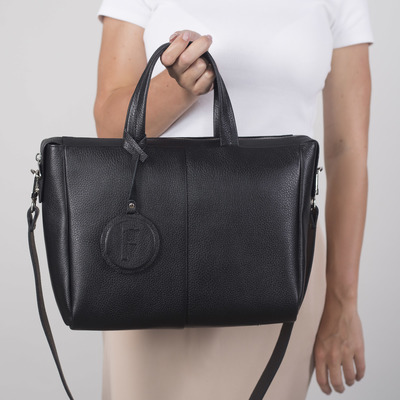 Ваша спутница: сумка тоут или саквояж. Они трапециевидные или прямоугольные, с жёстким дном (чаще саквояжи) и держат форму, поэтому бумаги не помнутся. У некоторых моделей есть сразу и короткие, и длинные ручки — можно быстро освободить руки, когда в дороге вам нужно быть на связи.