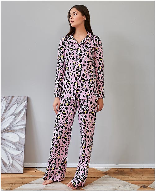 Небанальный леопард — это свежий микс трендового анималистичного принта и неожиданной цветовой палитры. Он не выглядит агрессивным, скорее наоборот. Оптимистичная и весёлая, домашняя одежда такой расцветки точно не даст вам впасть в осеннюю хандру.