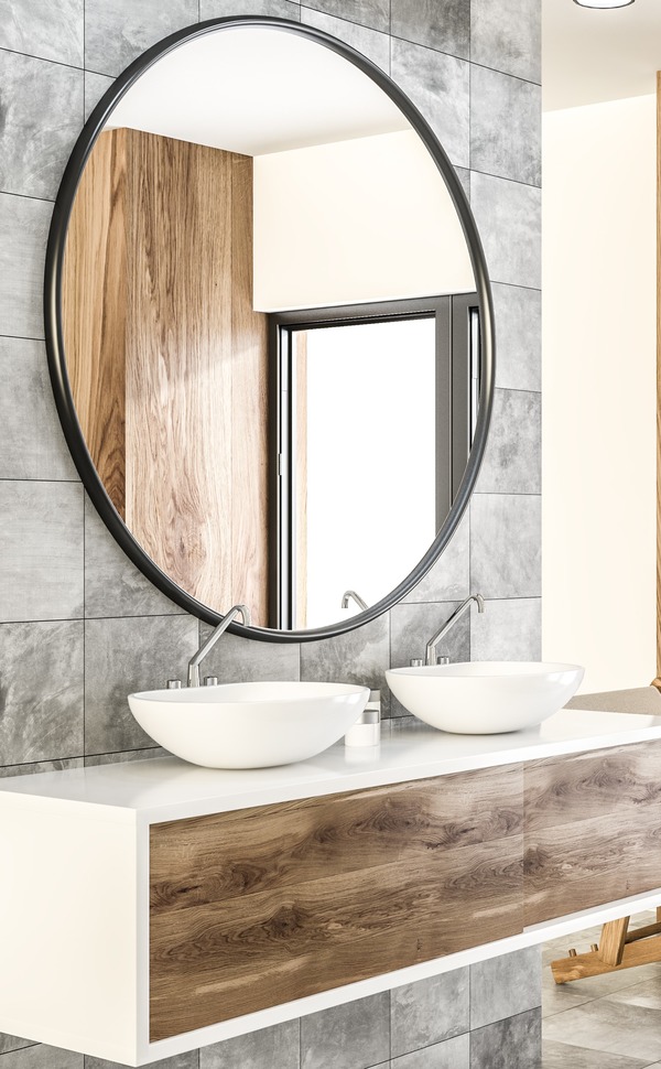 Зависят от мебели и сантехники. Если они минималистичные, аксессуары лучше выбрать поинтереснее, они станут акцентами. Если же базовые элементы необычной формы, с декором, то стоит обратить внимание на простые детали. Это правило поможет не перегрузить интерьер.