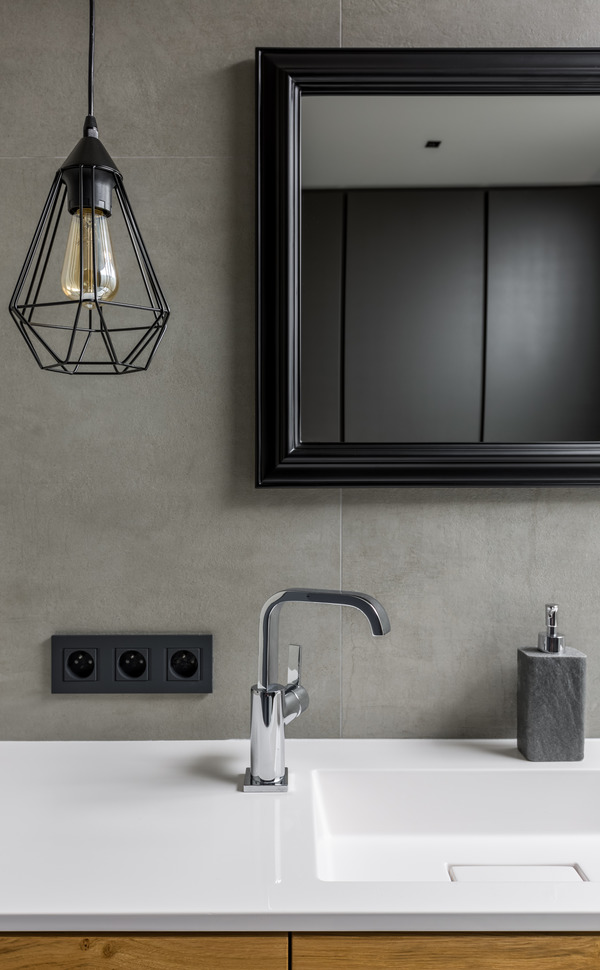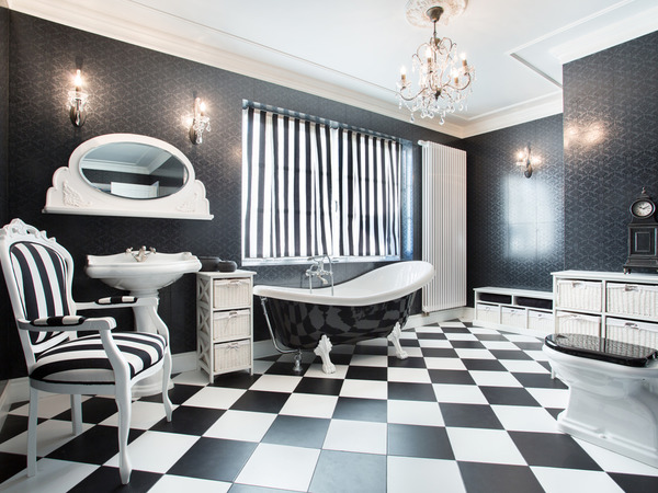 Мебель и сантехника подойдут любых стилей, на ваш вкус. Главное — чтобы оттенки чёрного и белого у предметов примерно совпадали. В этом залог визуальной гармонии.