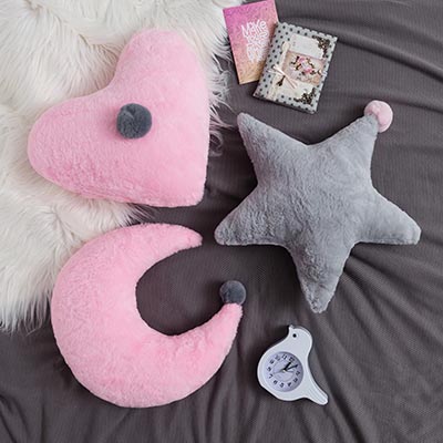 Милейшие велюровые подушки в виде звезды, сердца и месяца идеально впишутся в интерьер детской комнаты и станут не только любимыми элементами декора, но и пригодятся для игры.