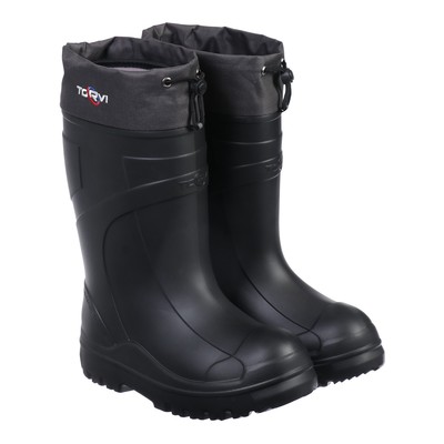 Тёплый костюм, термобельё и сапоги защищают от мороза.