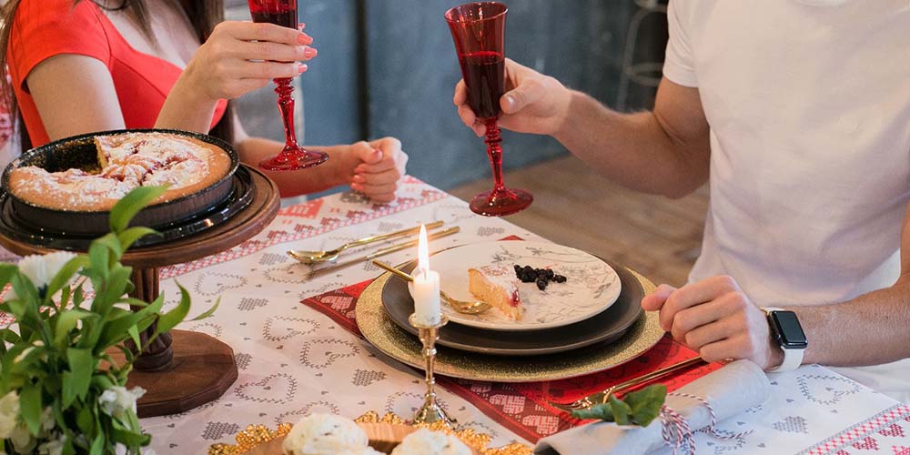 Ужин — неотъемлемая часть любого свидания. Здесь следует обратить внимание не только на вкусные блюда, но и на сервировку стола. Скатерть, салфетки и кухонные аксессуары помогут создать неповторимый романтический вечер. Идеи праздничных блюд возьмите из этой статьи.