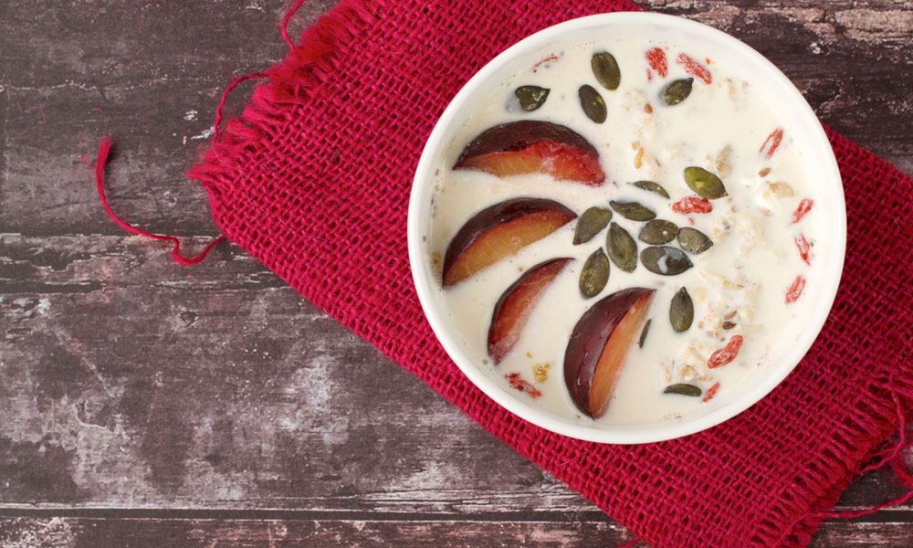 Йогурт со сливами и семенами тыквы