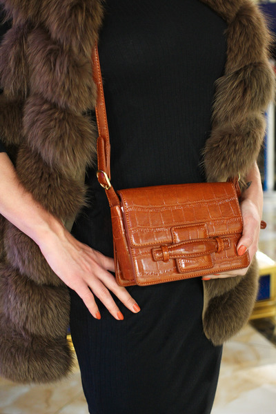 Особая текстура крокодиловой и змеиной кожи выходит на первый план и становится главным украшением сумки. Чем меньше дополнительного декора, тем лучше. Единственное исключение — оттенок. Если кожа окрашена, аксессуар считается ещё моднее. |