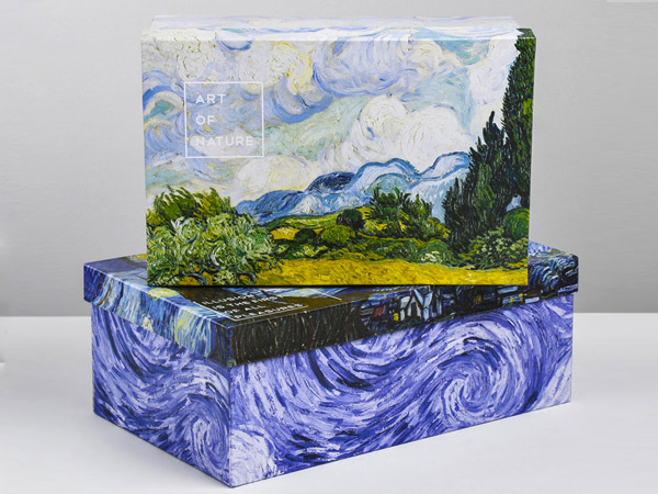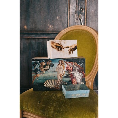 Полотна известных художников роскошно смотрятся не только в музеях, но и на коробках. Особенно если они сделаны из плотного картона и напечатаны насыщенными красками. В какую упаковку вы завернёте подарок: «Поцелуй» Климта или «Сотворение Адама» Микеланджело? А с набором из 10 коробок можно порадовать репродукциями мирового искусства всех друзей. Или оставить коробки себе, чтобы хранить в них мелочи 😊