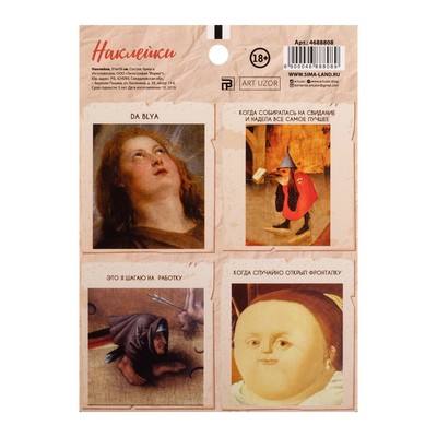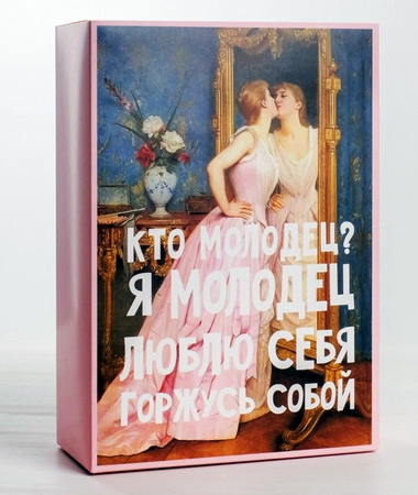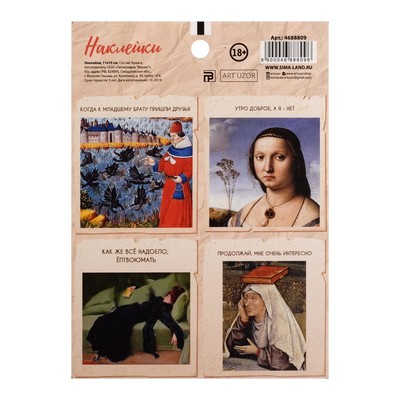 А вы слышали о новом молодёжном тренде? Берёте классическое произведение искусства, желательно из эпохи Возрождения, и дополняете его забавной надписью. Получается гротескно и нелепо, от этого и смешно. А значит, упаковка в таком стиле несёт двойную пользу: поднимает настроение и приобщает к прекрасному.