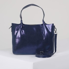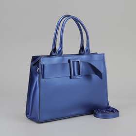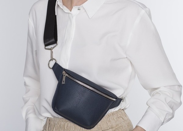 Обратите внимание на модели с золотыми и серебряными деталями — их сочетание с синим выглядит аристократично. И отнеситесь со всей серьёзностью к текстуре материала: разные поверхности создают совершенно разное впечатление от аксессуара. Матовые транслируют спокойную роскошь, а переливающиеся — игривое веселье.