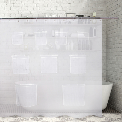 Это не штора, а ход конём для обладателей компактных комнат. Если вам не хватает места для хранения, создайте его сами. Используйте кармашки, чтобы разместить ванные принадлежности и моющие средства. А шкафчики, если они имеются, можно отдать под другие важные вещи — полотенца, бельё, хозтовары.