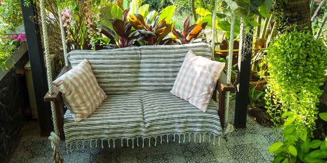 Чаще всего для таких зон используют садовые качели, подвесные кресла, гамаки и шезлонги. Выбор зависит опять же от площади и особенностей участка, а также от количества хозяев и их предпочтений. Кому-то достаточно растянуть между деревьями гамак, а кто-то расставляет всю возможную мебель для отдыха.
