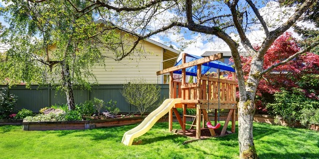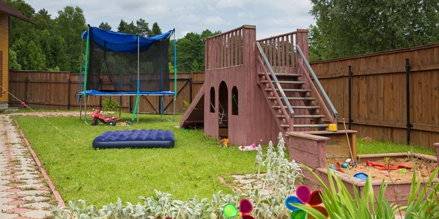 Небольшая песочница и качели отвлекут ребятишек от вредительства. А если хотите развить физические способности ребёнка, обустройте масштабную спортивно-игровую площадку. Свежий воздух, активность и витамины с вашего сада станут настоящим подарком для здоровья малыша.