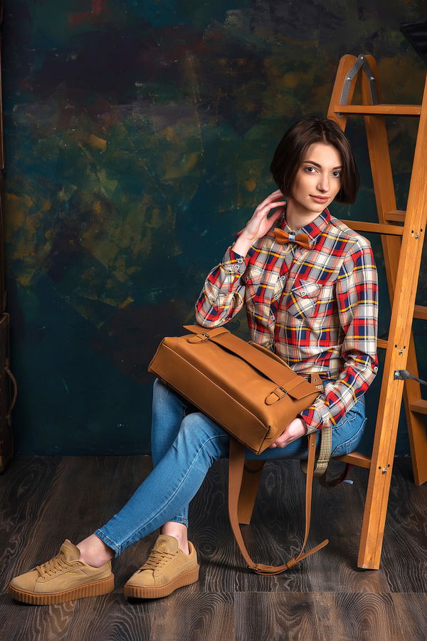 Если стилем кантри вы вдохновляетесь не меньше, чем денди, предлагаем поэкспериментировать и с ним. Синий деним и рубашка в клетку превратят вас в девушку с Дикого Запада и разбавят коллекцию комплектов на каждый день. А респектабельная сумка не даст образу показаться простоватым.