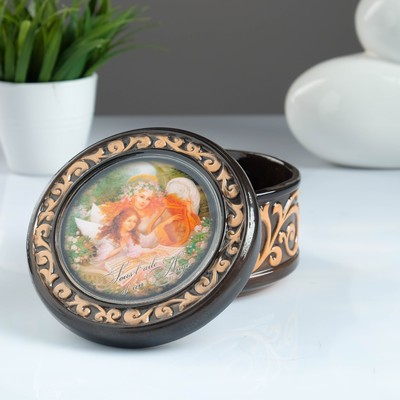 Статуэтки — самый распространённый вид украшений для винтажного стиля. Но чтобы оформление не было однообразным, можно разбавить декор и другими предметами с изображениями ангелов. Это могут быть часы, шкатулки, фоторамки, кашпо или подсвечники.