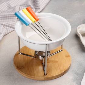 - С помощью шпажки или вилочки для фондю обмакивайте батончики в шоколад и выкладывайте на тарелку, чтобы застыли.