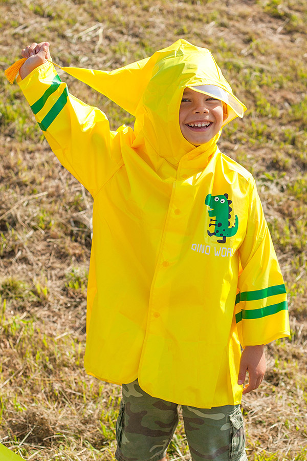 Как правило, дождевик надевается на свитер, курточку, а иногда и поверх школьного рюкзака. Поэтому он должен быть свободного кроя, чтобы ребёнку было удобно играть и бегать.