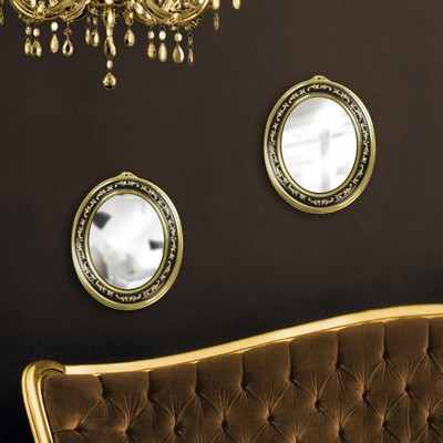 Для интерьера с благородным налётом старины подойдут крупные свободно висящие на стенах зеркала. В спальне это может быть трюмо и настольное зеркальце. Лучше выбирать овальные модели или прямоугольные, но в массивных рамах с барельефами или витыми элементами. В гостиной — большое зеркало над мягкой мебелью или полкой. Или несколько маленьких рядом.