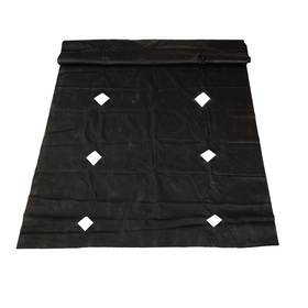 Вам понадобится нетканый материал и колышки. Укройте разрыхлённую землю, зафиксируйте материал колышками и сделайте на нём отверстия для растений. Если хотите упростить работу, выбирайте уже перфорированное полотно.
