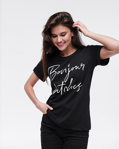 Футболка — базовый элемент любого гардероба. Но чтобы вы не выглядели скучно в таких простых вещах, наши дизайнеры украсили изделия стильными и броскими надписями. К футболке подберите шорты из денима, комбинезон или джинсы — классический casual с перчинкой готов.