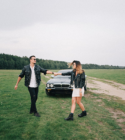 Для платья невесты лучше выбрать кремовый, дымчатый или молочный оттенок. Жених может быть в рубашке с подвёрнутыми рукавами и растёгнутым воротом или в футболке и джинсах. А добавить дерзости образам молодожёнов помогут косухи, джинсовые куртки, массивные аксессуары и грубая обувь на толстой подошве или мокасины.