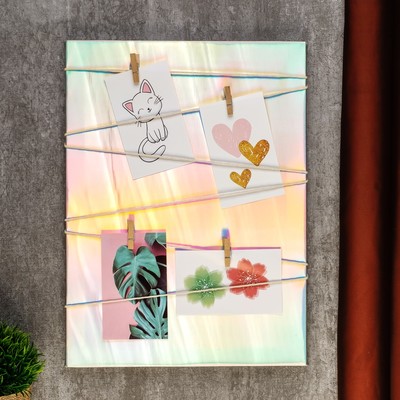 5. Миксуйте фото с рисунками и памятными вещицами. Это придаст интерьеру особый шарм. Для такой задумки хорошо подходят текстильные или пробковые доски. Снимки и прочий декор на них можно крепить с помощью прищепок или канцелярских кнопок.
