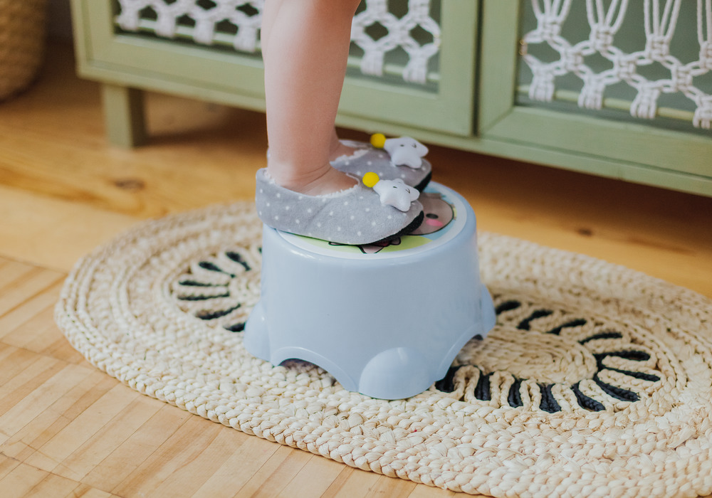Подставка лёгкая и имеет выемки, чтобы малышам было удобно передвигать её самостоятельно. Ещё аксессуар хорош тем, что его можно использовать как табурет и приспособить для детской.