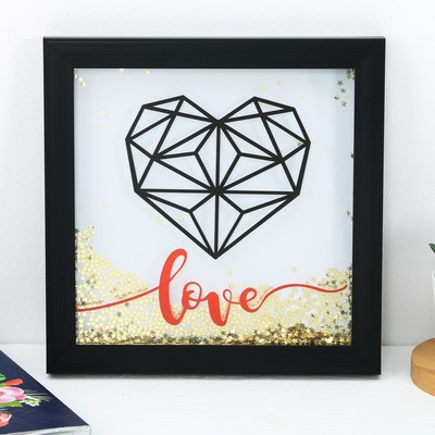 Когда 3 тренда сочетаются в одном изделии — это успех. Королевский чёрный, геометрия и шейкер. Стильная рамка будет не только украшать интерьер, но и послужит средством медитации. Когда захотите отвлечься, просто покрутите изделие в руках и наблюдайте за плавным потоком блёсток внутри.