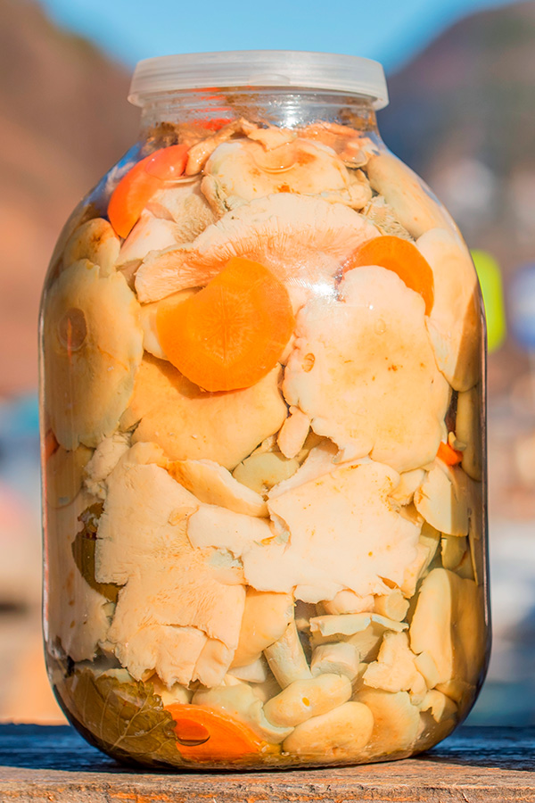 - Остывшие грибы разложить по банкам и залить маринадом.