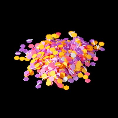 Тонкие блестящие фигурки из фольги или полимеров ровно ложатся на ноготь и не выпирают, их легко наносить. И необязательно составлять узоры: разложите элементы в хаотичном порядке — получите эффект конфетти.