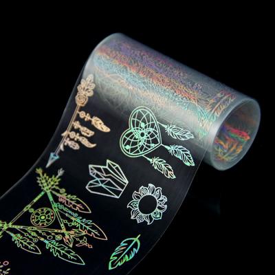 Модные переливы на ногтях сделают праздничный маникюр максимально эффектным. Для быстрого создания блестящих узоров, воспользуйтесь переводной фольгой. На слегка подсушенное базовое покрытие приложите заранее вырезанный кусочек, разгладьте и уберите резким движением. Голографический маникюр готов!