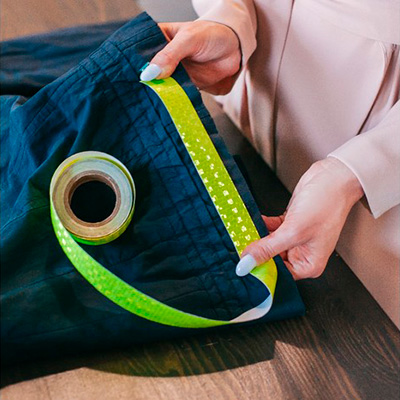Сделать верхнюю одежду заметной в темноте помогут светоотражающие ленты-стропы. Пришивать их лучше всего на манжеты, по краям верхней одежды или на нагрудный карман.