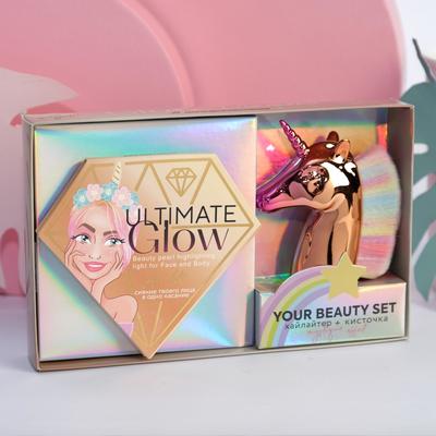 Хайлайтер с помпой, напоминающий ретро-духи, привнесёт шарма не только в мейкап, но и туалетный столик украсит. А с кисточкой-единорогом макияж точно не получится обыденным 😉