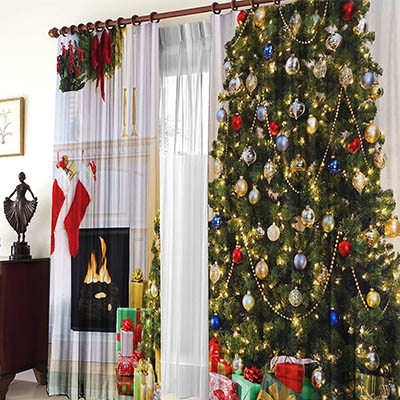 Если декоративных подушек и пледа вам кажется недостаточно, чтобы сделать гостиную особенной, — замените шторы. Праздничные зимние мотивы приблизят праздник и порадуют в будни.