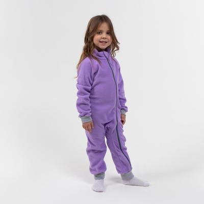 Вторым слоем одежды используйте тёплый комбинезон из флиса. Воротник-стойка защитит шею ребёнка от ветра. На поясе сзади имеется резинка-утяжка, благодаря которой одежда плотно прилегает к телу. На штанинах и рукавах сделаны манжеты, что также позволяет сохранить тепло.