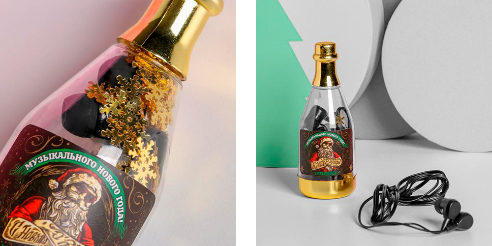 Все наушники из праздничной серии Like me уже оформлены в новогодние бутылочки, банки, ёлочные шары и просто красивую упаковку. Например с модной голографией или плохим сантой 😈 Так что ваш подарок не останется незамеченным.